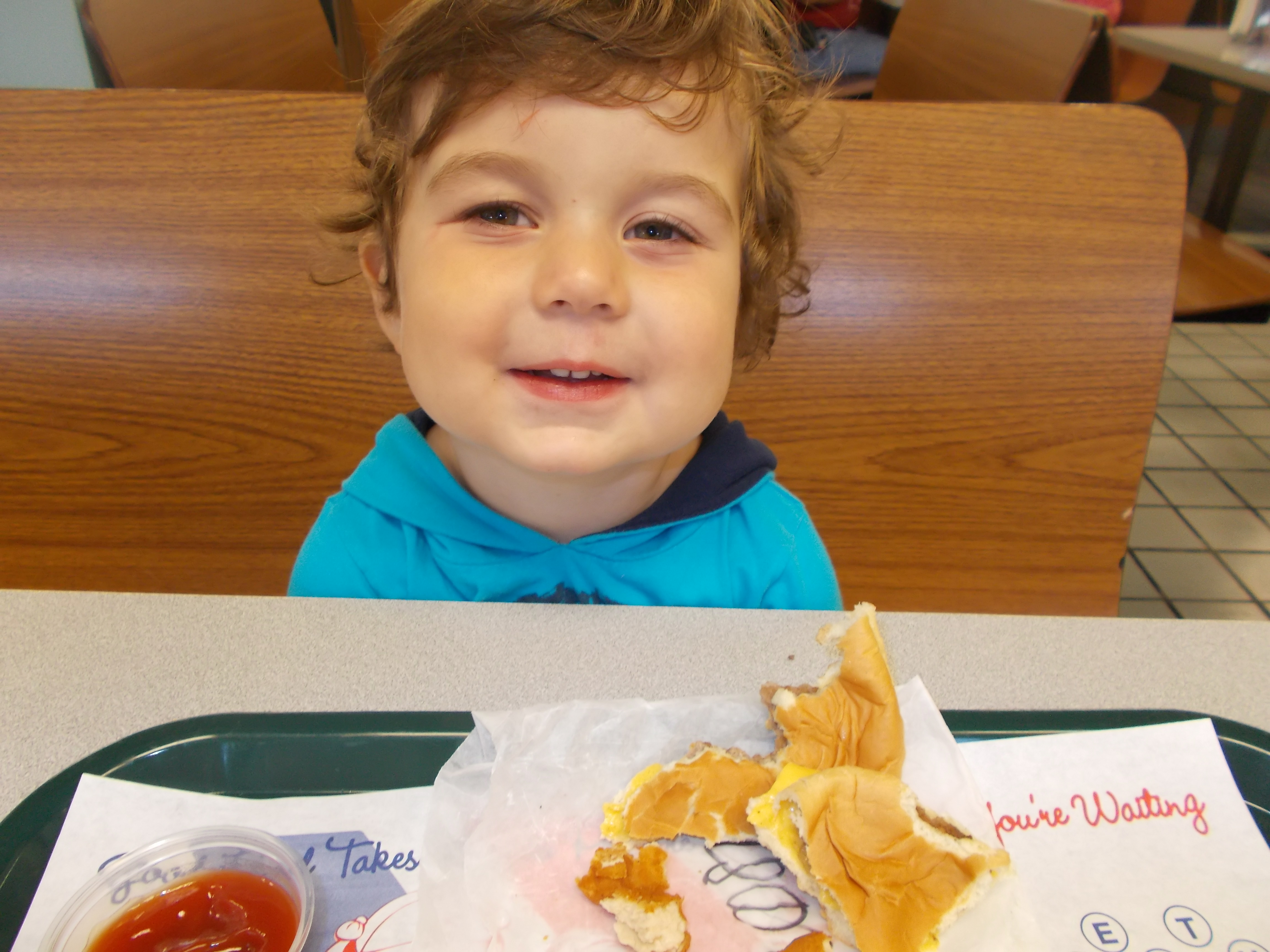 Tuesday and Wednesday I spent at home, mainly lounging, bummed that I was neither at work, nor really enjoying my family time. Yesterday, Thursday, I headed back to work, still not feeling all that well. I dropped Josiah off with my great Aunt Tc, saddened by his tired eyes and stuffy nose. My baby had caught my bug. The thing that’s worse than being sick is knowing that it lead to my baby boy being sick. Thankfully, he was loved on all day by his Aunty and cousins, and when I picked him up, he was a little more perky. I wanted to make sure he ate well, so I had decided earlier in the day that I’d take him on a Momma-Son date. We went to Dairy Cottage for a “hanguber” (one of my very favorite Josiah words), chicken nuggets, and fries. While we were sitting there, he looked up at me with pure delight and said, “This place is REALLY NICE, Mom!”